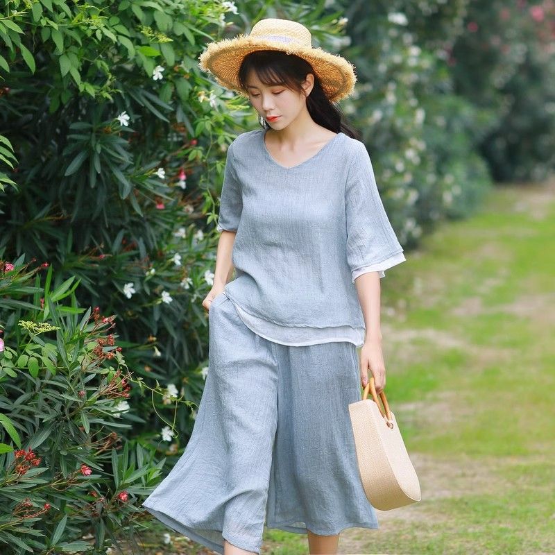 自然素材の心地よさを感じるジェンダーレスファッション リネンキュロットパンツコーデ