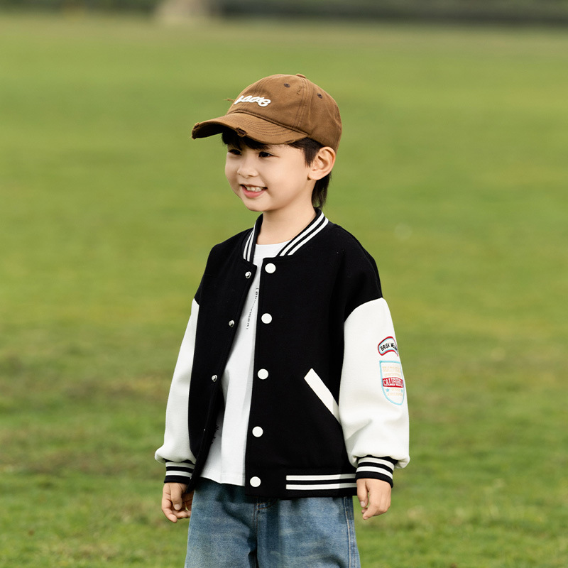 黒と白のコントラストが目を引くこのジェンダーレスファッションのスタジャンは、学生風のテイストに現代的なエッセンスを加えた一着です。