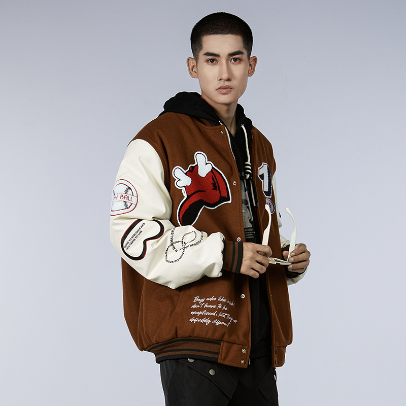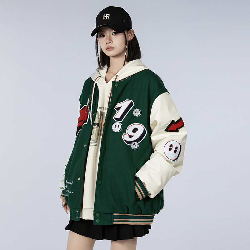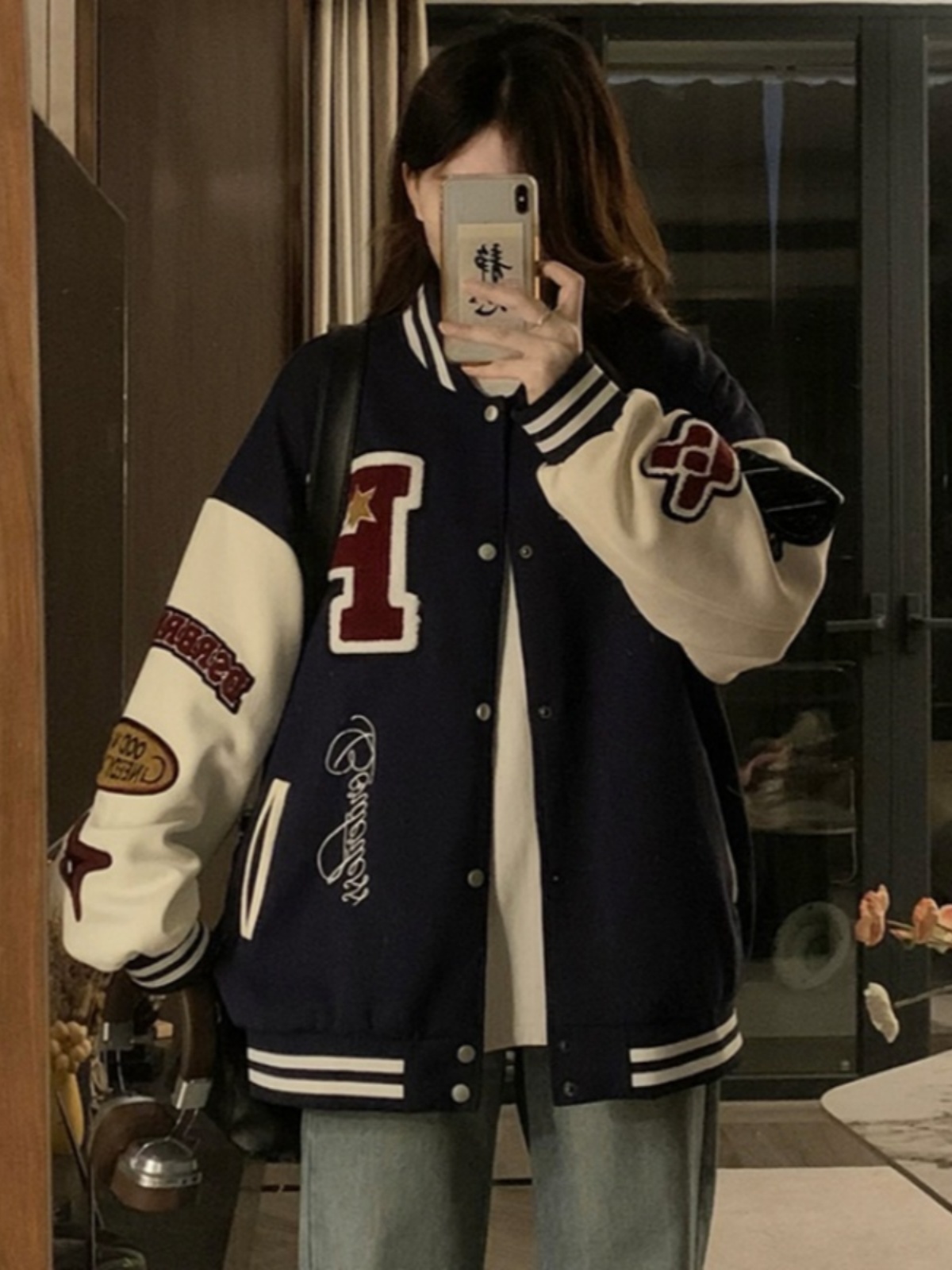 レトロな雰囲気漂うジェンダーレスファッションのレタードジャケット