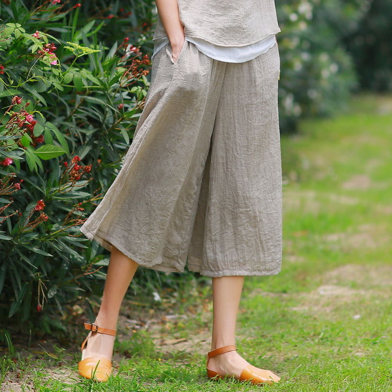 ナチュラルなベージュカラーのリネン素材キュロットパンツは、ジェンダーレスファッションの中でも特に上質な雰囲気を醸し出すアイテムです。