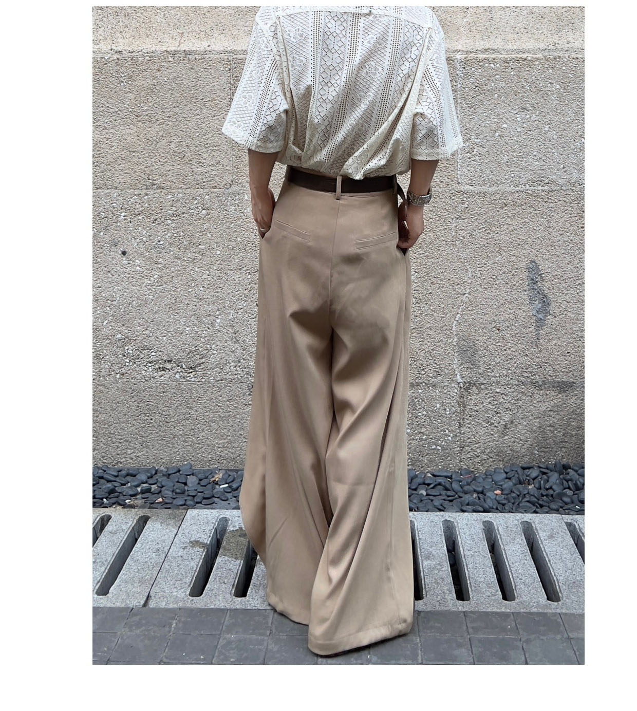 淡いカラーリングが印象的なこのワイドパンツは、ジェンダーファッションレスの世界観を体現した一着です。