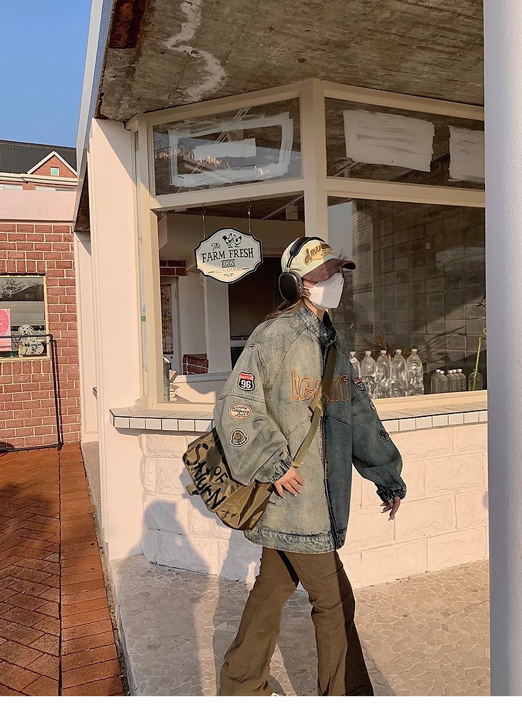 胸元や袖のワッペンやイラストがアクセントとなり、着るだけで個性的な雰囲気を演出します。