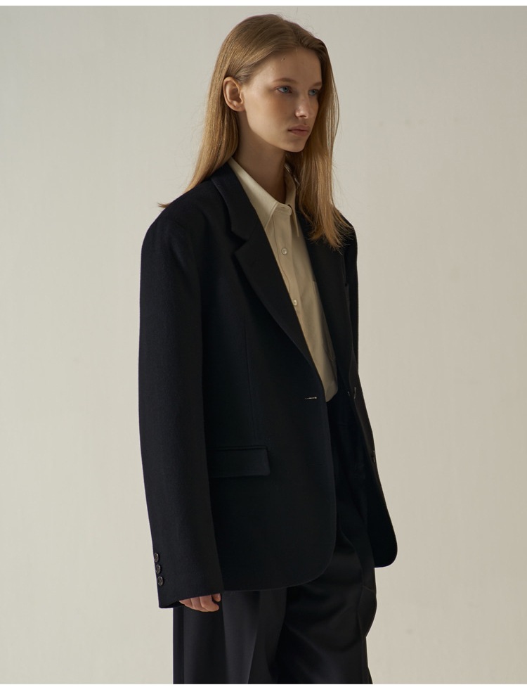 襟元のチェーンやジッパーディテールがモード感を演出します。